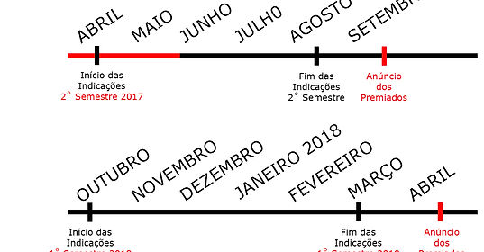Para a premiação do primeiro semestre de 2018, começaremos a aceitar indicações na primeira semana de outubro de 2017, estendendo-se até começo de março de 2018. O anúncio dos três premiados do primeiro semestre de 2018 acontecerá em abril.
